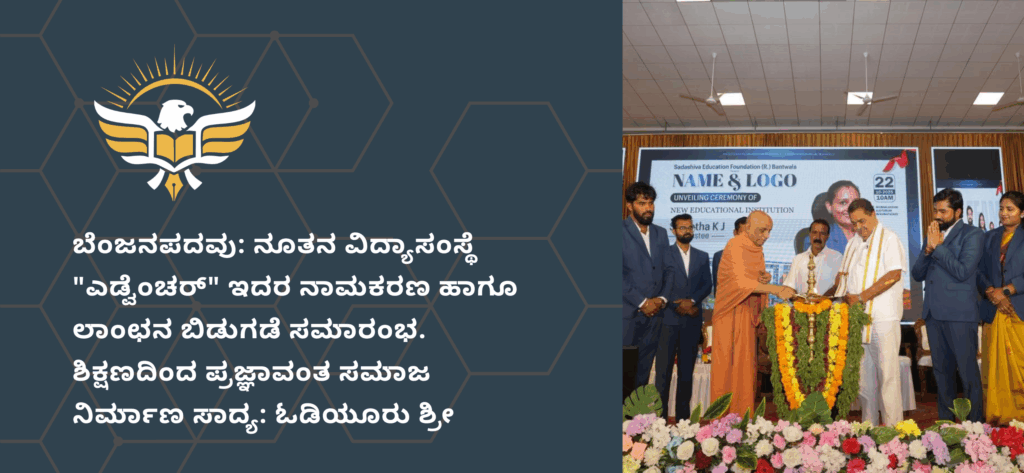 ಬೆಂಜನಪದವು: ನೂತನ ವಿದ್ಯಾಸಂಸ್ಥೆ “ಎಡ್ವೆಂಚರ್” ಇದರ ನಾಮಕರಣ ಹಾಗೂ ಲಾಂಛನ ಬಿಡುಗಡೆ ಸಮಾರಂಭ. ಶಿಕ್ಷಣದಿಂದ ಪ್ರಜ್ಞಾವಂತ ಸಮಾಜ ನಿರ್ಮಾಣ ಸಾದ್ಯ: ಓಡಿಯೂರು ಶ್ರೀ