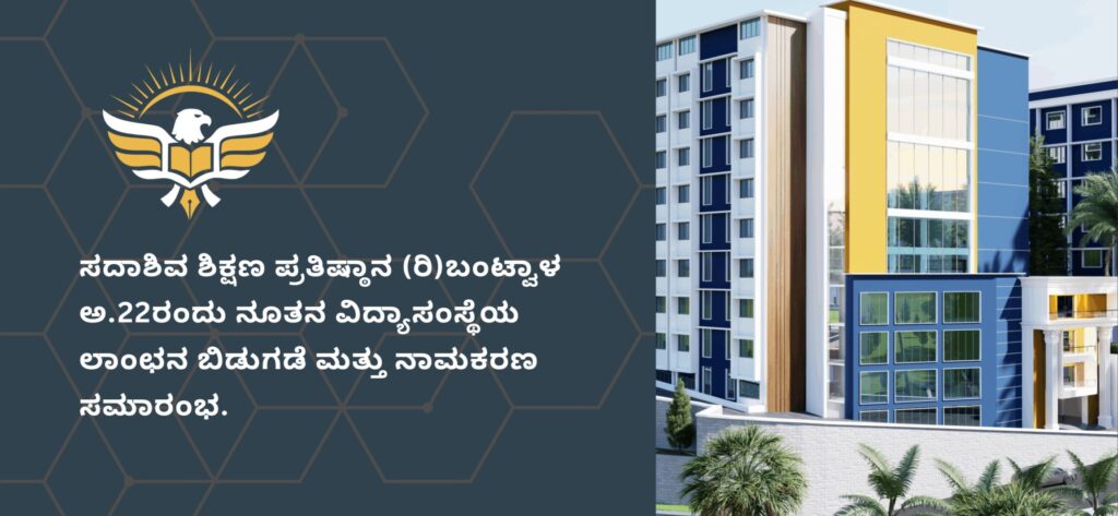 ಸದಾಶಿವ ಶಿಕ್ಷಣ ಪ್ರತಿಷ್ಠಾನ (ರಿ)ಬಂಟ್ವಾಳ ಅ. 22ರಂದು ನೂತನ ವಿದ್ಯಾಸಂಸ್ಥೆಯ ಲಾಂಛನ ಬಿಡುಗಡೆ ಮತ್ತು ನಾಮಕರಣ ಸಮಾರಂಭ.