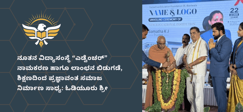 ನೂತನ ವಿದ್ಯಾಸಂಸ್ಥೆ “ಎಡ್ವೆಂಚರ್” ನಾಮಕರಣ ಹಾಗೂ ಲಾಂಛನ ಬಿಡುಗಡೆ, ಶಿಕ್ಷಣದಿಂದ ಪ್ರಜ್ಞಾವಂತ ಸಮಾಜ ನಿರ್ಮಾಣ ಸಾಧ್ಯ: ಓಡಿಯೂರು ಶ್ರೀ